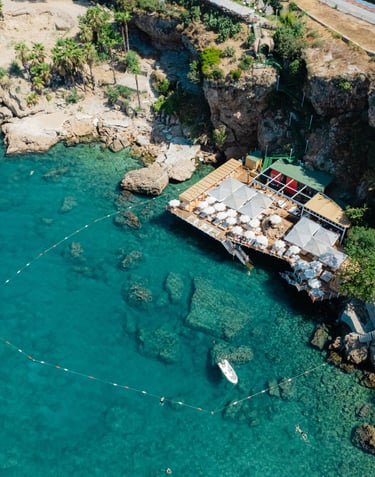Wake up to panoramic views over the cliffs of Lara — one of the most stunning coastlines in Antalya.