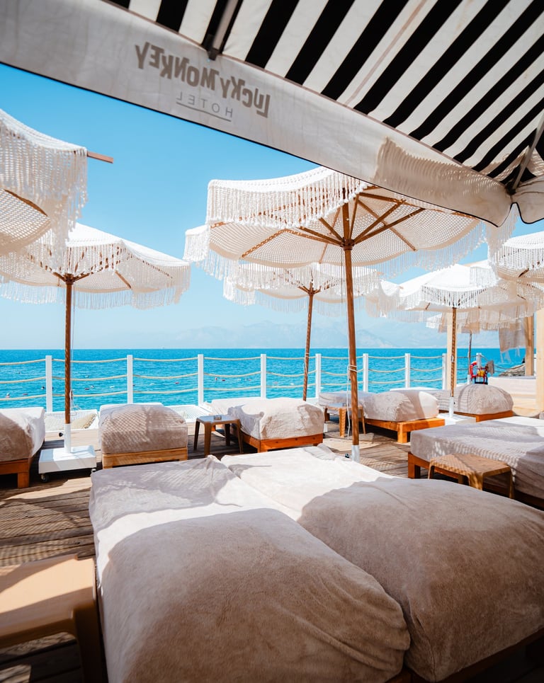 At Lucky Monkey Hotel, every detail is designed to elevate your stay on the Mediterranean coast. Located on the famous cliffs of Lara, our boutique hotel offers spacious modern rooms, panoramic sea views, a relaxing outdoor pool area and direct access to the vibrant Lucky Monkey Beach. Enjoy a freshly prepared breakfast each morning, unwind with a professional massage therapy session, or spend your day exploring Antalya’s most iconic attractions — from Kaleiçi Old Town to Hadrian’s Gate and the marina, all just minutes away. Our on-site restaurant and bar serve signature cocktails and globally inspired dishes, while artistic interiors and curated social spaces create a lively, stylish atmosphere. Whether you're traveling as a couple, a family or for a weekend escape, Lucky Monkey Hotel provides comfort, personality and an unforgettable connection to the Mediterranean. Here, modern design meets coastal living — making Lucky Monkey Hotel the perfect place to stay, relax and experience the best of Antalya.
