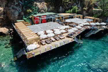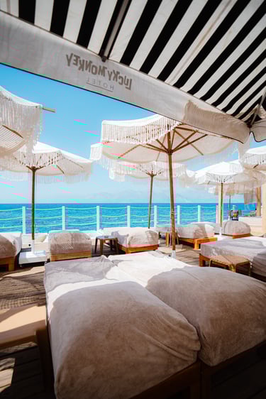 Lucky Monkey Beach is shaped by a unique DNA — music, colour, style, sea and the unmistakable Mediterranean energy that defines every moment here. As you move through the beach, you’ll discover hidden corners that reflect this spirit: a sunset lookout with golden views, artistic walls bursting with colour, private cabana spots and quiet cliffside angles perfect for reflection or capturing unforgettable photos. Every detail is designed to inspire, relax and connect you with the rhythm of the coast, making Lucky Monkey Beach not just a place to visit, but a place to feel.